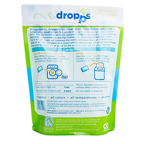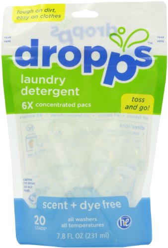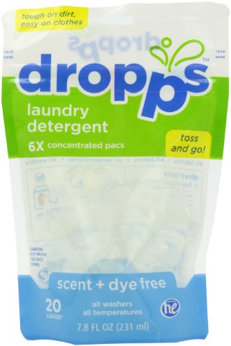Dropps HE Laundry Detergent Pacs, Scent + Dye Free, 20 Counts (Pack of 3)