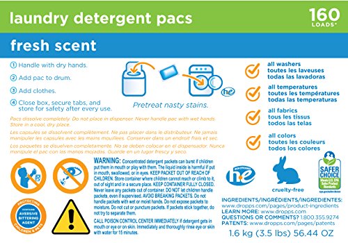 Dropps HE Sensitive Skin Laundry Detergent Pacs, Fresh Scent, 160 Loads