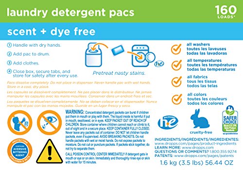 Dropps HE Sensitive Skin Laundry Detergent Pacs, Scent + Dye Free, 160 Loads