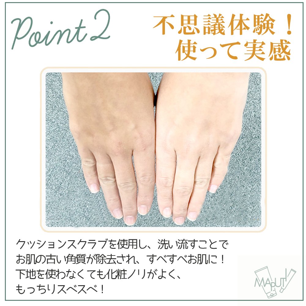 全成分:水、グリセリン、ミネラルオイル、酸化チタン、ジグリセリン、キャンデリラロウ、香料、マンナン、トウモロコシ穂軸粒、アンズ核、シア脂ユズ果実エキス、セイヨウシロヤナギ樹皮エキス、アマチャヅルエキス、ポリグルタミン酸、コンフリー葉エキス、イザヨイバラエキス、ビルベリー葉エキス、サガラメエキス、オウゴン根エキス、ハトムギ種子エキス、オクラエキス、ユキノシタエキス、ヒメフウロエキス、サクシノイルアテロコラーゲン、バーシック油、水溶性プロテオグリカン、ポリヒドロキシステアリン酸、テトラオレイン酸ソルベス-60、テトラオレイン酸ソルベス-30、ウンデシレン酸グリセリル、オレイン酸ソルビタン、ポリソルベート80、テトラヘキシルデカン酸アスコルビル、ホエイ、尿素、グリチルリチン酸2K、BG、海塩、海シルト、メチルパラベン、カルボマー、HEDTA-3Na(アクリレーツ/アクリル酸アルキル(C10-30)クロスポリマー、フェノキシエタノール、水酸化Na、水酸化Al、リン酸2Na、リン酸K