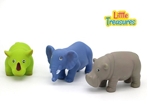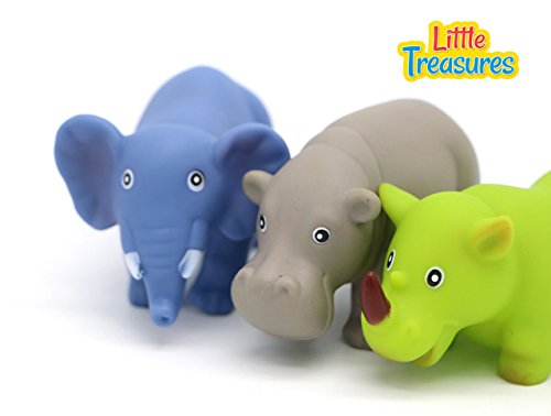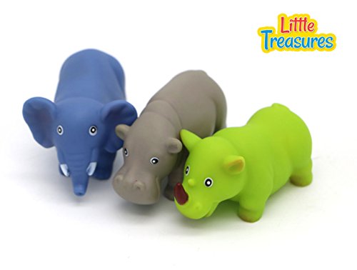 -. Binding : Toy -. Brand : Little Treasures -. EAN : 0815547028178 -. Feature : Bath toys: the bath squires are 3 Saharan characters of elephant, hippopotamus and rhinoceros that float, squirt and squeak along with your baby / Safari fun: an adventurous way to make buddy-buddy with a bunch of safari friends / Artful conception / Friendly zoo inhabitants: made up of safe, nontoxic rubber material that has characteristic softness and durability that won't allow mold to grow or chipping off / Quality & durable bathtub toy, the baby bath toy is big in size for baby friendly use -. Label : Little Treasures -. Manufacturer : Little Treasures -. Model : B01C4H56U0 -. MPN : B01C4H56U0 -. PackageQuantity : 1 -. PartNumber : B01C4H56U0 -. ProductGroup : Toy -. ProductTypeName : TOYS_AND_GAMES -. Publisher : Little Treasures -. Studio : Little Treasures -. Title : Little Treasuress Animal Bath Toys for Babies 19 Plus -. UPC : 815547028178