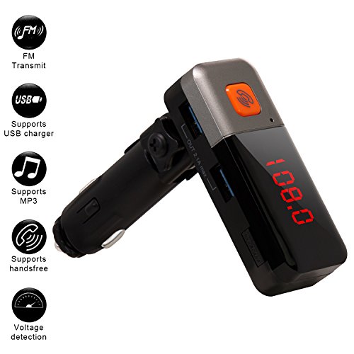 - ✔EASY TO USE: Just plug the FM Transmitter in the car cigarette lighter, adjust it and the car radio at the same frequency (frequency range from 87.5 to 108 Mhz). Then connect your phone or music player with the FM transmitter via bluetooth/Audio cable