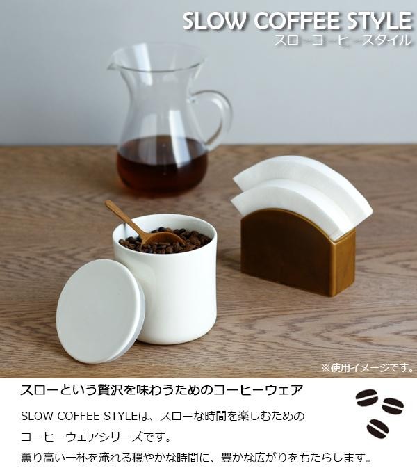 | 約200gのコーヒー豆が入る磁器製のキャニスター。直射日光を遮る磁器製は、コーヒーの風味をより長く保つことができます。袋のままでも入る口径が広いデザインです。 |