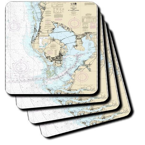 3dRose Print of Nautical Map Of Tampa Bay - Ceramic Tile Coasters, set of 4 (cst_214251_3)