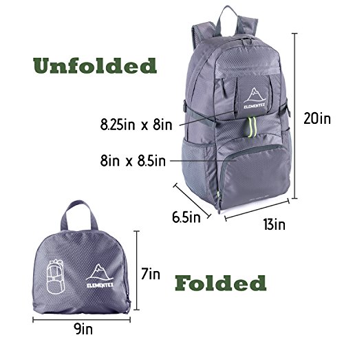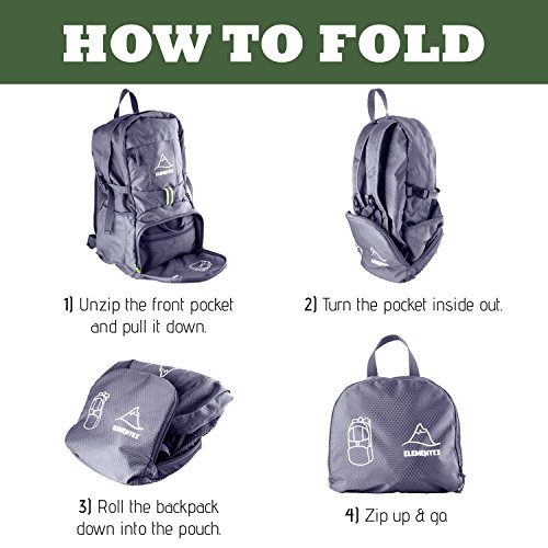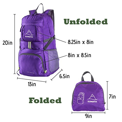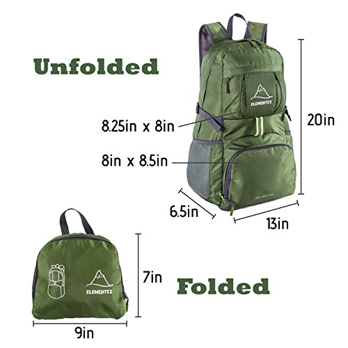 With the ELEMENTEX Foldable Travel Backpack, you're ready to hit the trail anytime. Spacious, durable, lightweight, and with a 1-year warranty, rest assured it can keep up with your active lifestyle. It easily holds all your gear, and when you're done, folds into an ultra compact pouch. Additional highlights include 2 front pockets, 2 side mesh pockets, adjustable shoulder straps, and built-in safety features such as a chest strap, reflector, and whistle Here at ELEMENTEX, we are all about the Experience - truly losing oneself in nature and being one with the elements. When you are hiking through lush green forests, conquering frosty alpine peaks, or kayaking down roaring rapid rivers, you need gear that is built tough to take on any trail or unchartered terrain, and able to withstand all kinds of weather, fair or fickle. To maximize your experiences and to help you create the most memorable adventures, ELEMENTEX delivers Excellence: High-performance clothing, gear and accessories that are made to tackle every excursion, camping trip, recreational sport, or any outdoor activity in your active lifestyle. ELEMENTEX is as enthusiastic as you are about being outdoors, so we fuel that energy into every product we make, but we don't stop there. The ELEMENTEX Team strives to exceed your expectations by providing not only safe and reliable gear, but also exceptional customer service and care. This philosophy is what keeps us rooted, as well as dedicated to providing you with affordable high-quality gear that will be there for you every step of the way. No matter where the road takes you. Escape into nature and truly immerse yourself in the great outdoors with ELEMENTEX at your side. With ELEMENTEX, you're ready to go. Warranty: ELEMENTEX Foldable Backpack comes with a 1-year limited manufacturer's warranty, which covers manufacturing/material defects only. It does not cover wear and tear due to normal use, abuse, or unapproved alterations. 0 |