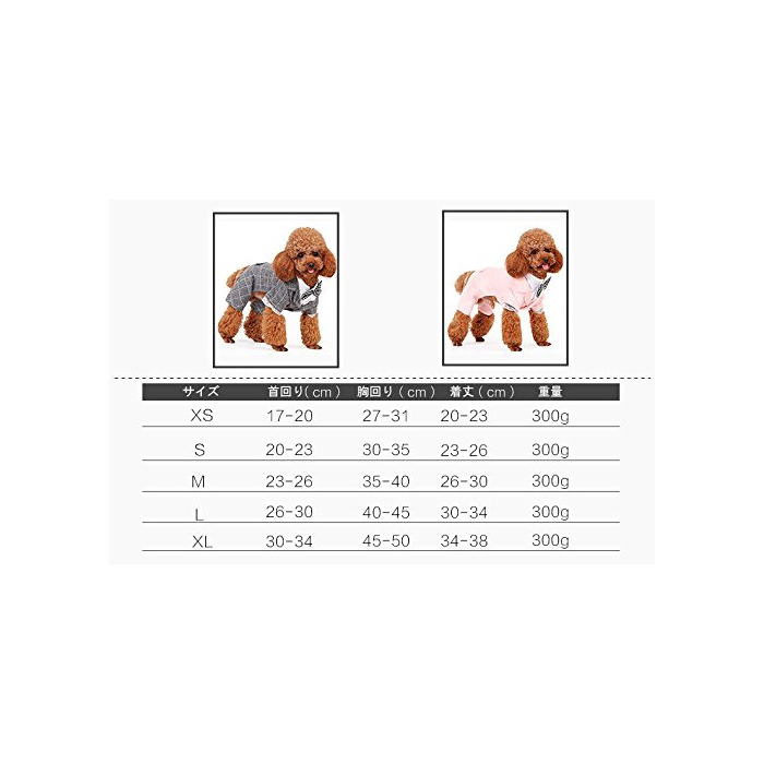사이즈:XS:옷 길이20-23cm 수주위17-20cm 흉주위27-31cm S:옷 길이23-26cm 수주위20-23cm 흉주위30-35cm M:옷 길이26-30cm 수주위23-26cm 흉주위35-40cm L:옷 길이30-34cm 수주위26-30cm 흉주위40-45cm XL:옷 길이34-38cm 수주위30-34cm 흉주위45-50cm.