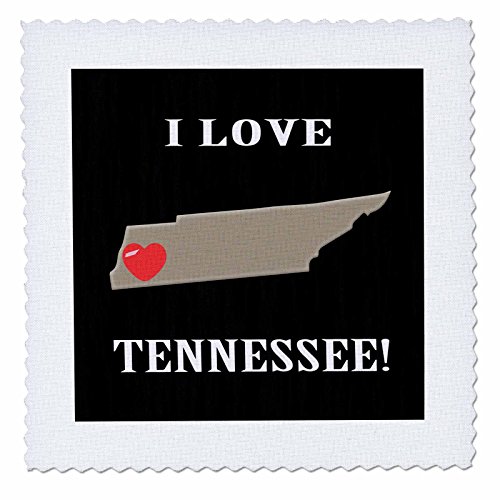 3D Rose I Love Tennessee with Heart on State Tan Red White and Black Quilt Square, 25 x 25"