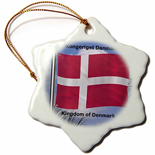 3dRose orn_58795_1 Flag of Denmark Waving Against Sky with Kingdom of Denmark written in English and Danish Snowflake Decorative Hanging Ornament, Porcelain, 3-Inch