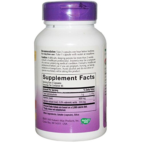 -. Binding : Health and Beauty -. Brand : Nature's Way -. EAN : 0033674634004 -. Feature : DOUBLE VALUE PACK! You are buying TWO of Nature's Way Valerian Standardized Formula (Restful Sleep) 90 Capsules / Valerian extract is standardized to 0.8% valerenic acids. Naturally promotes restful sleep without the side effects commonly associated with sleep aids. / Quantity: MULTI VALUE PACK! You are buying Description: VALERIAN EXTRACT Unit Size: 90 CAP Brand: NATURE'S WAY -. IsAdultProduct : 0 -. Label : NATURE'S WAY -. Manufacturer : NATURE'S WAY -. MPN : 00325357 -. PackageQuantity : 2 -. PartNumber : 00325357 -. ProductGroup : Health and Beauty -. ProductTypeName : HEALTH_PERSONAL_CARE -. Publisher : NATURE'S WAY -. Size : 90 CAP -. Studio : NATURE'S WAY -. Title : Nature's Way Valerian Standardized Extract Formula - 90 Capsules, 2 pack (image may vary) -. UPC : 033674634004