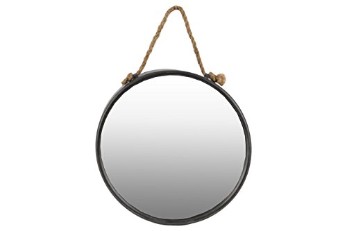 Urban Trends Metal Round Wall Mirror with Rope Hanger, Tarnished Gunmetal Gray