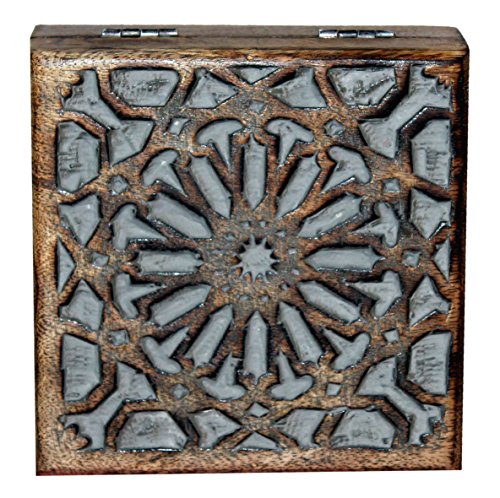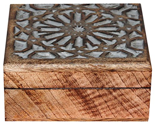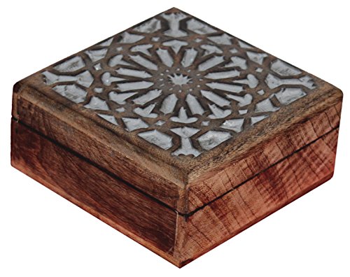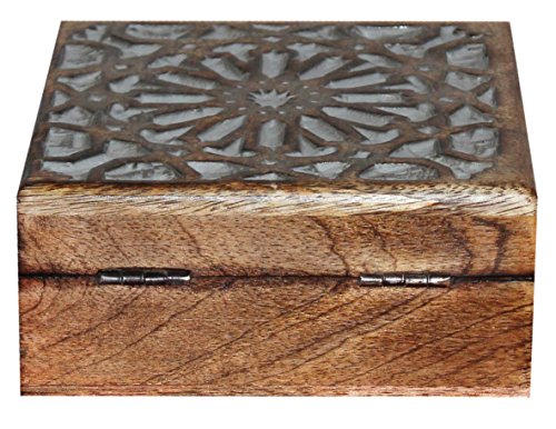 SAAGA Multipurpose Decorative Wooden Jewelry Trinket Holder Keepsake Storage Box with Carving / Handmade : 5x5x2.25 inches (LxBxH)