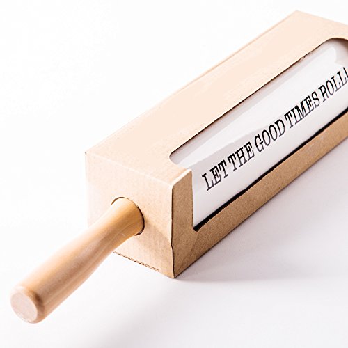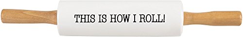 Palais Dinnerware Ceramic Rolling Pin with Wood Handles with Fun Text ('This Is How I Roll')