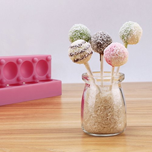 Beasea Circle Shape 3D Lollipop Molds Hard Candy Silicone,8 Cavities Ice Ball Lollipop Chocolate Fondant Mold Jelly Soap Tray DIY Gum Pastry Kitchen Tool Pink with 100 Paper Sticks
