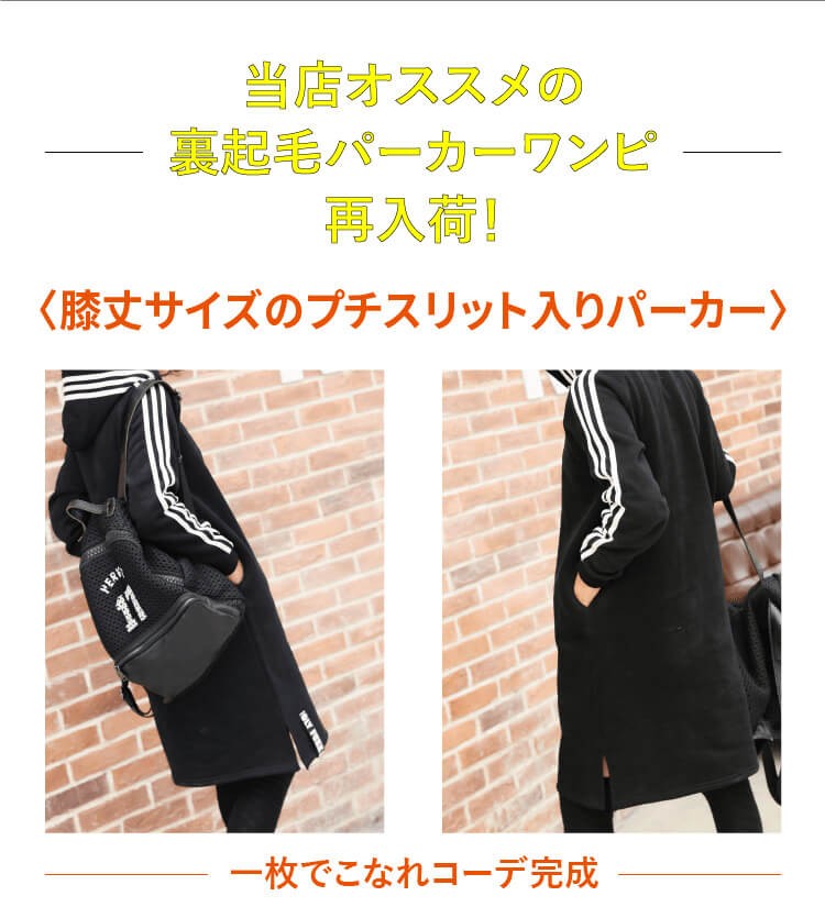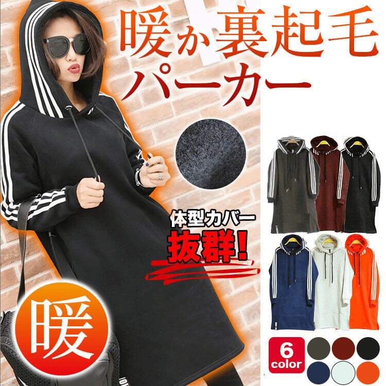 当店オリジナル裏起毛素材♪超あったか~おしゃれスウェットパーカーワンピ!!新入荷!! リピーターの方にも愛されてます♪当店人気裏起毛冬物ルームウェアシリーズ新作入荷いたしました♪ スポーツジム、ジョギング、旅行時、ちょっと近所のコンビニまでお出かけ、お部屋着など様々な場面で活用OK♪大活躍の万能アイテムです! 裏起毛で厚みのある素材で、柔らかい手触り♪楽チンに着こなせます。 再入荷できないカラーもございますので、早いもの勝ちです。 |