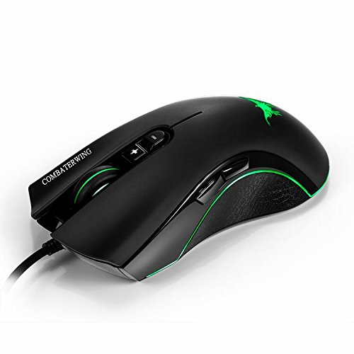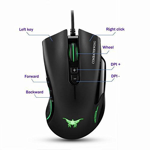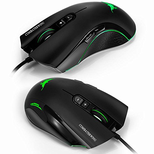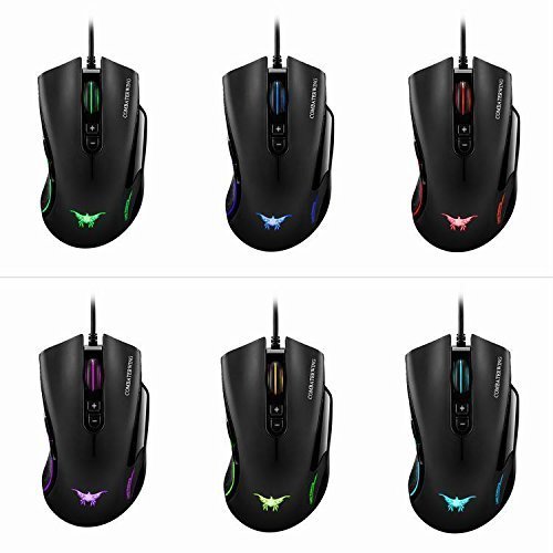COMBATERWING CW10 4800DPI Mice 6 Breathing LED Colors 7 Buttons Design Changing High Precision for Gamer PC 6 Speed DPI Wired Professional Gaming Mouse (Black)