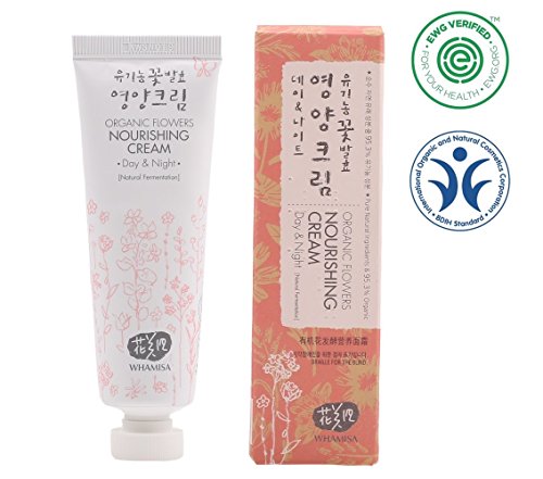 - Whamisa Organic Flowers Nourishing Cream for Day and Night contains naturally fermented flowers and botanicals that nourishes and moisturizes your skin, makes it glow, and increases skin elasticity. This cream is white, thick, and higher in viscosity than the Water Cream, which is lighter in texture. due to the lack of chemicals that boost absorption, it might not be as quickly absorbed as other regular skincare products for certain skin types. Suitable for all skin types, ideal for dry skin.