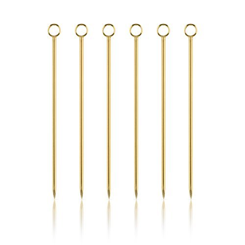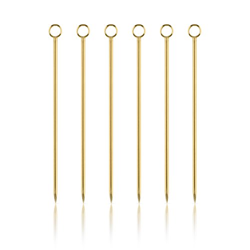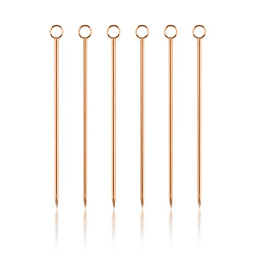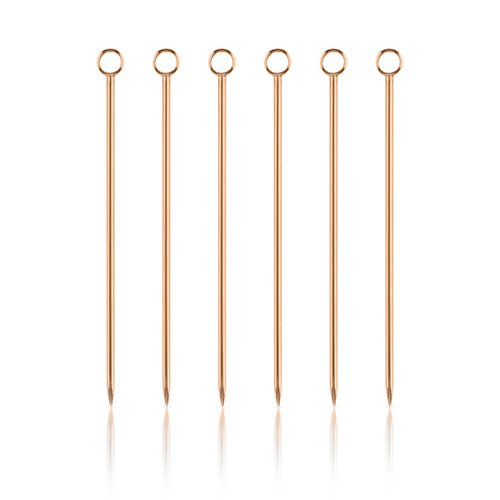 Studio : True Brands Publisher : True Brands Product Description Pick your poison. Each copper cocktail pick in our classic set of six is finished with a small steel ring, ideal for propping an olive in your martini or a brandied cherry in your Manhattan. - Set of 6 - 304 Stainless Steel - Polished copper finish - Hand wash only 0