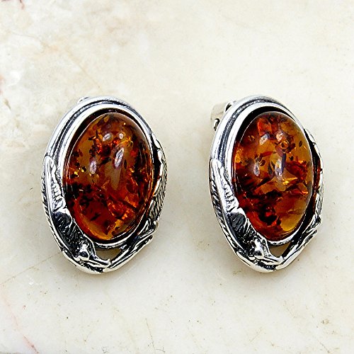 Clip-on earrings; Natural Baltic Amber from Poland length: 0.75"