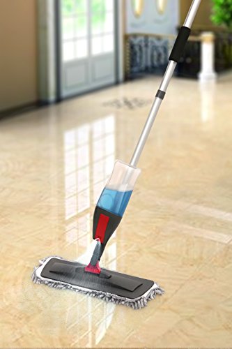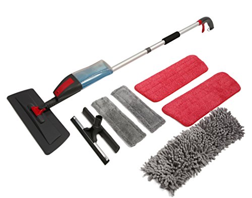 SPRAY MOP KIT, MOP SYSTEM FOR KITCHEN, BATHROOM, HARDWOOD, LAMINATE, WOOD, CERAMIC TILES, WINDOW CLEANING AND DUSTING, REFILLABLE BOTTLE + 5 FREE PREMIUM MICROFIBER MOP PADS