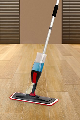 Spray Mop Kit, Mop System for Kitchen, Bathroom, Hardwood, Laminate, Wood, Ceramic Tiles, Window Cleaning and Dusting, Refillable Bottle + 5 FREE Premium Microfiber Mop Pads
