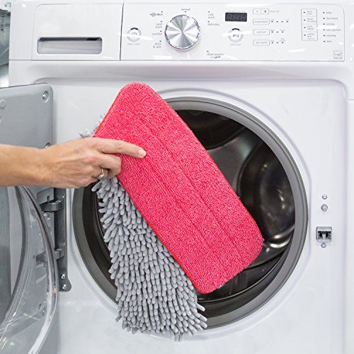 Included: (2) Red Microfiber Pads for Floor Cleaning, (2) Grey Microfiber Pads for Window Cleaning, (1) Wiper, (1) Chenille Pad to dry wet floors and wipe dust off dry floors