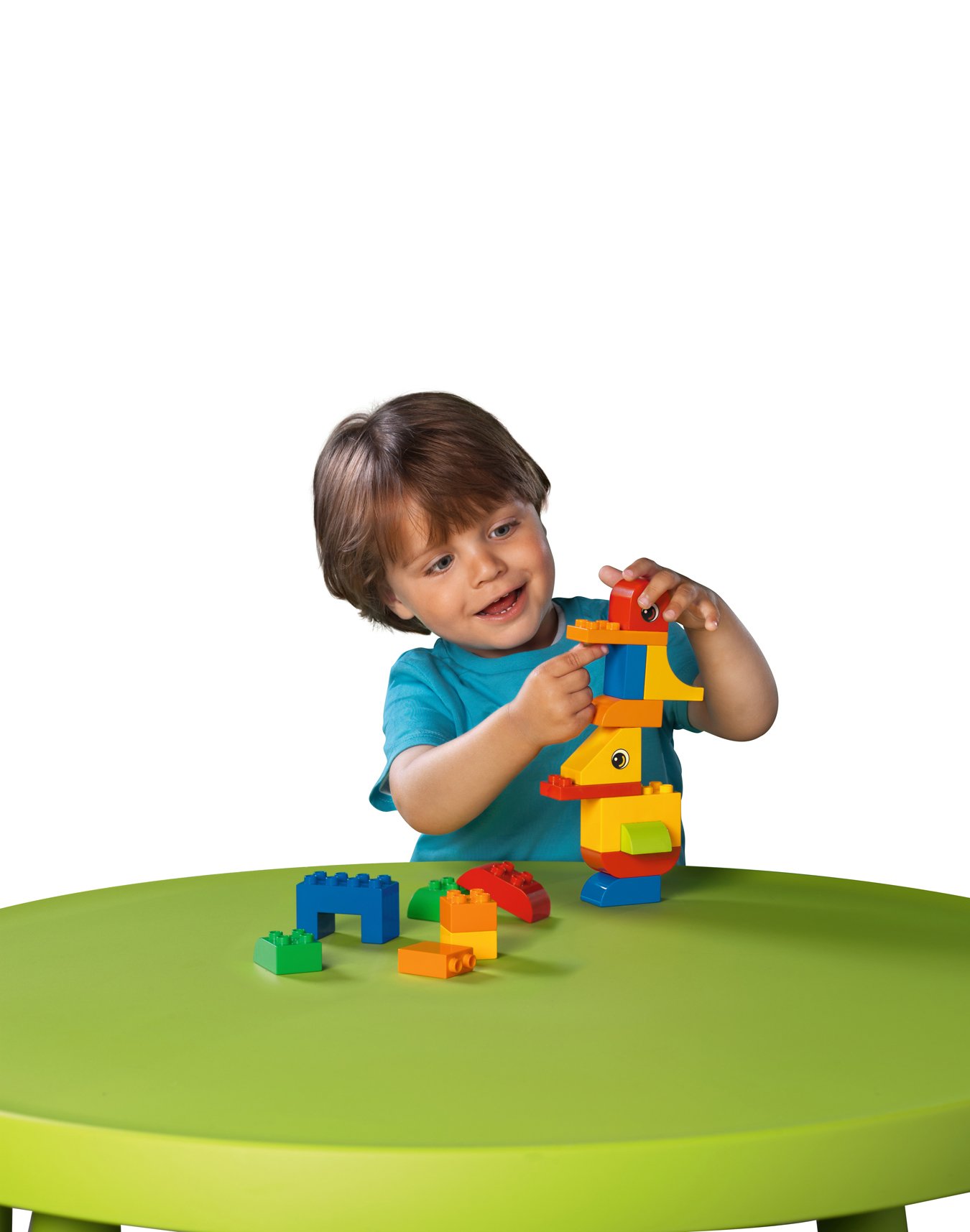 There are 23 duplo basic blocks and round blocks of different colors and you can enjoy puzzle play with the shape.