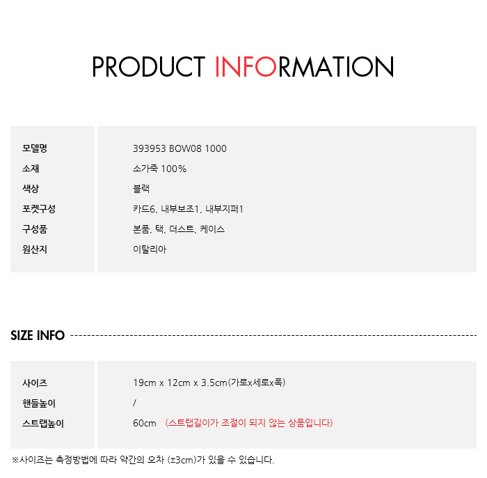 구성품본품, 택, 더스트, 케이스