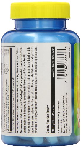Studio : Nature's Life Publisher : Nature's Life Binding : Health and Beauty Product Description Calcium and magnesium are essential minerals intended to provide nutritive support for healthy bones and teeth. Vitamin D is intended to provide nutritive support for enhancing calcium absorption and metabolism. Suitable for vegetarians. 0