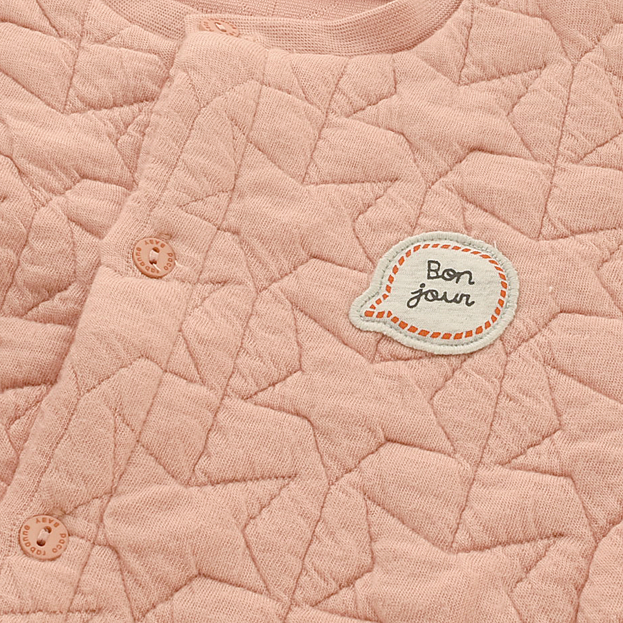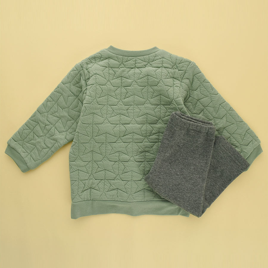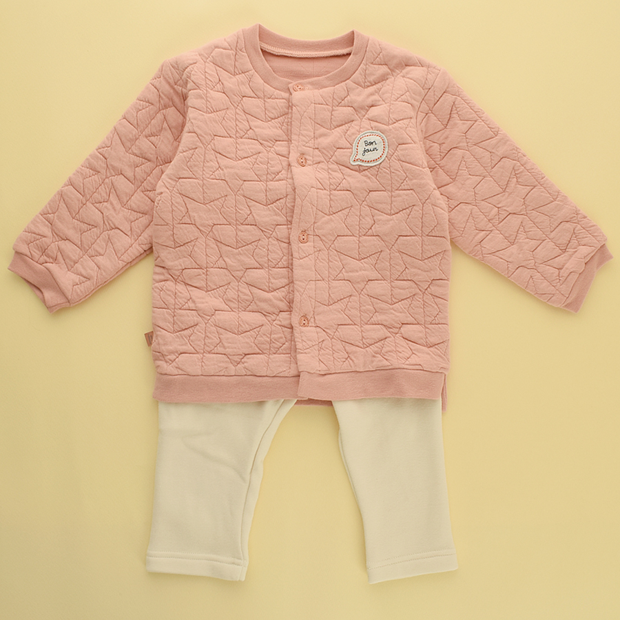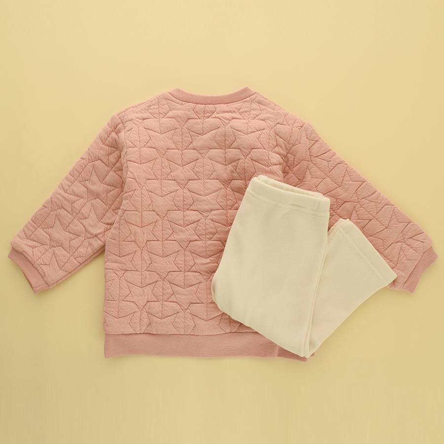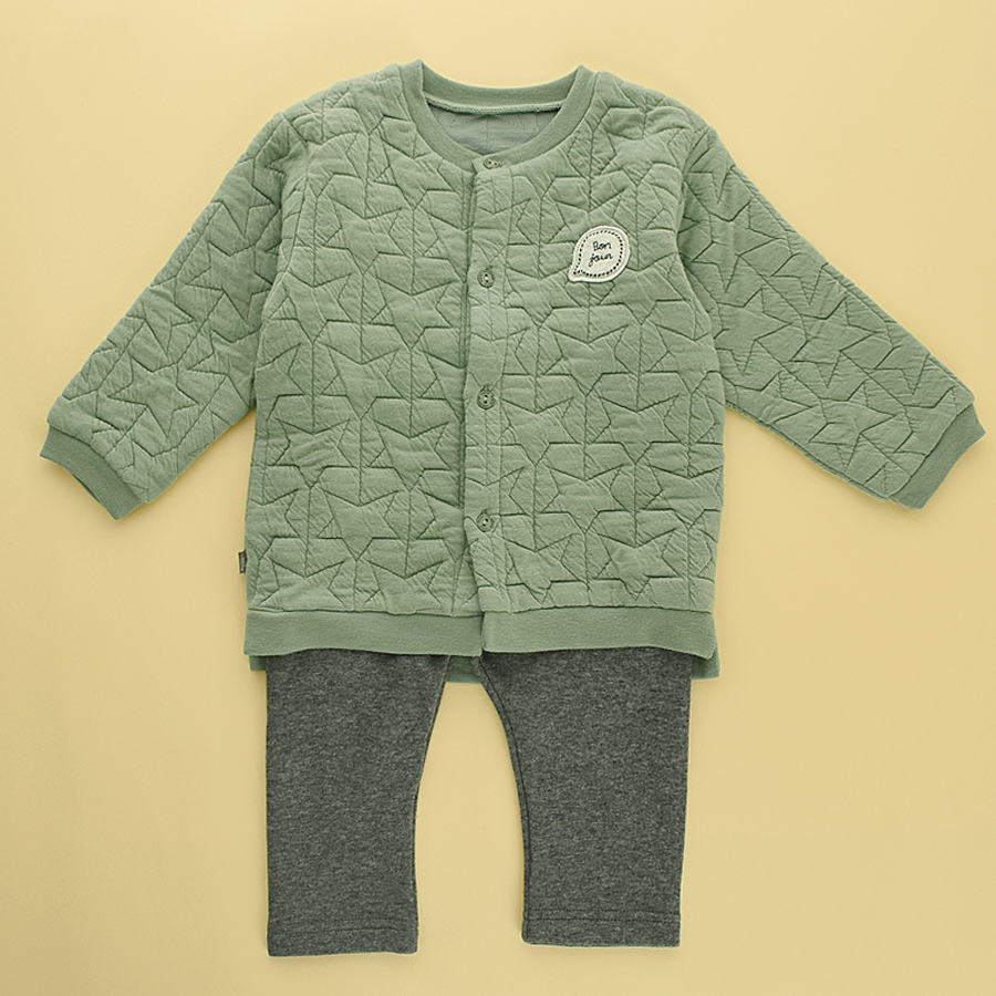 - 별무늬 퀼팅처리가 되어있는 도톰한 원단의, 아가스럽고 사랑스러운 느낌의 상하복입니다.