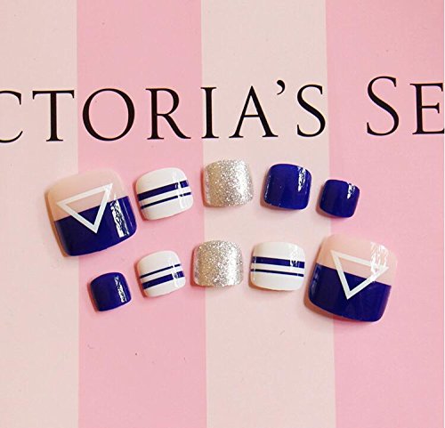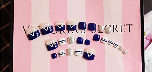 Bridalvenus 24Pcs/Set Bridal False Nails Set Toe Nails Full Cover Short Square Fake Toe Nail Tips with Design Press on Nails with Glue and Adhesive Tab for...