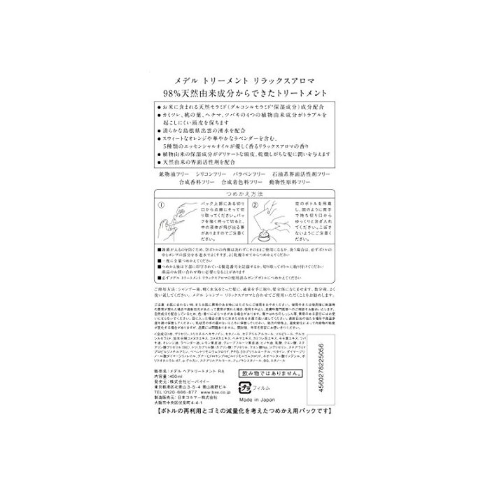 원본상품명: メデル ナチュラル トリ?トメント リラックスアロマ 詰め替え 400ml