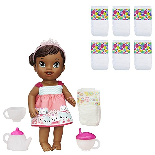 -. Title : Baby Alive Lil Sips Baby Has a Tea Party Doll (African American) & Baby Alive Diapers 6 Pack Bundle