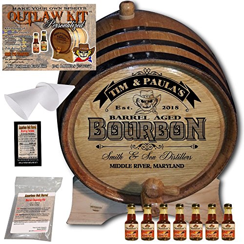 Studio : American Oak Barrel Publisher : American Oak Barrel Product Description Branded backside with Skeeter's face, insures this is a Certified, Authentic American Oak Barrel Product! Personalized Outlaw Kit "MADE BY" American Oak Aging Barrel - Design 102: Barrel Aged Bourbon - 2018 Barrel Aged Series............This vessel is handcrafted from American white oak, bound by 6 hoops of steel and features a stunning laser engraved design celebrating Dad's endeavors! Outlaw Kit includes Skeeter's Reserve Premium Essence necessary to create your own Spirit Masterpiece! The barrel is perfectly charred to release the sugar from the oak. After the firing process, the sugar caramelizes on the inner wall and is critical to mellowing the decanted spirit. The longer your spirits age in this barrel the smoother, refined or mature it becomes. Accommodates approx. 1.25 gallons of spirit. Please enjoy responibly! 0