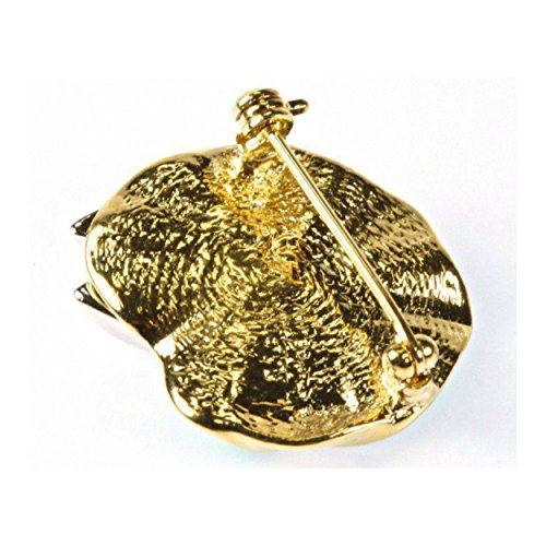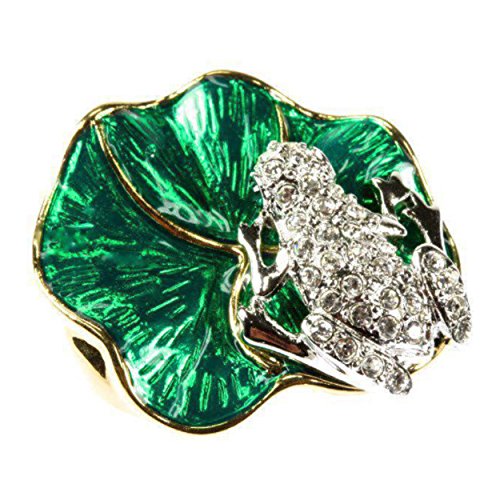 Our charming frog with sparkling crystals, might call to mind the image of an enchanted prince waiting to be kissed. Enamel epoxy and crystals on gold-finish pad and silver-finish frog. Pin measures 1 inch, frog measures 20mm by 10mm.