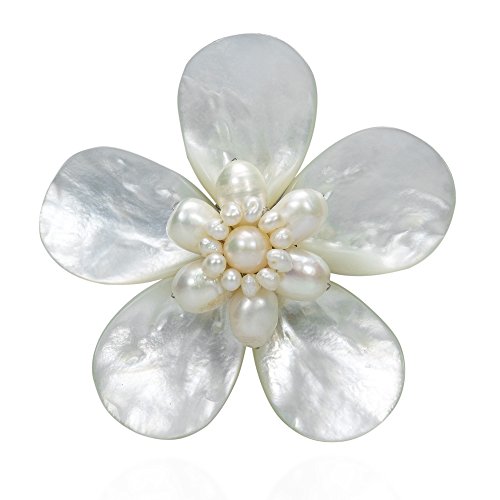 Inspired by nature, this elegant brooch features white mother of pearl petals embellished by cultured freshwater white pearls. This beautiful brooch was handmade in Thailand by artisan Lai. PLEASE NOTE:The handcrafted nature of this product will produce minor differences in design, sizing and weight. Variations will occur from piece to piece, measurements may vary slightly.Includes an original AERAVIDA organza jewelry pouch (comes in various colors), also handmade by our Artisans. Perfect for gift giving to someone special or keep for yourself!