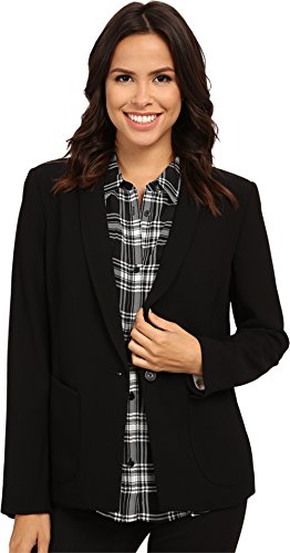 Fully lined jacket boasts a smooth polyester fabrication. Fold-over collar. Long sleeves sport triple-button cuffs. Single-button front closure. Straight hemline with back split for ease of movement. Self and Lining: 100% polyester. Hand wash cold, line dry. Imported.