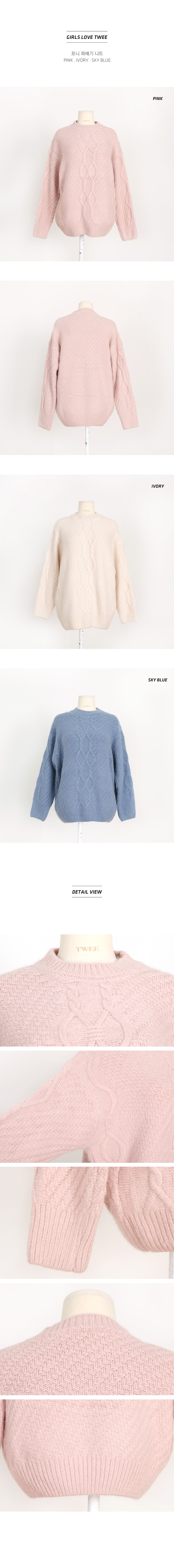 포니 꽈배기 니트포근한 느낌의 러블리한 무드의 니트러블리한 컬러감과 부드러운 촉감의니트로 포인트를 주기 좋은 니트 소개해요~꽈배기 패턴이 들어가 있고 루즈한 핏으로 여리여리해보이고 소매가 긴편이라더 여리하게 떨어지는 라인으로 소매를 롤업해서 연출해주셔도 예뻐요!!전체적인 핏이 루즈해서 귀여운 느낌으로두께감이 두껍지는 않는 니트로지금부터 입어주시기 좋아요~얼굴이 화사해 보이는 컬러들로 구성되어 있어 겨울코디 아이템으로 강추드려요~