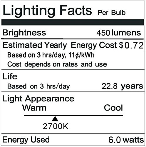 - 85% savings on your electricity bill! LumenStarr 6W LED A19 provides an ideal replacement of your 40W incandescent bulb.