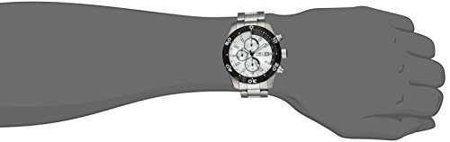 -. Feature : Chronograph functions with 60 second, 60 minute and 1/10 of a second sub dials; date window at 3:00 / Silver dial with black and white hands and hour markers; luminous; unidirectional black ion-plated stainless steel bezel; tachymeter; flame fusion crystal; stainless steel case and bracelet / Japanese-quartz Movement / Case Diameter: 45mm / Water Resistant To 330 Feet