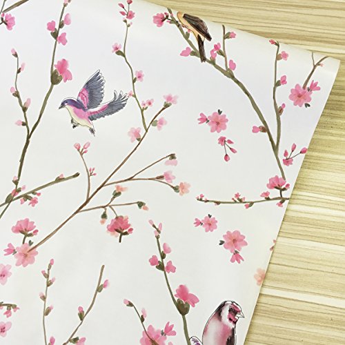 SimpleLife4U Peel & Stick Shelf Liner Removable Contact Paper for Covering Apartment Old Nightstand Closet, Peach Birds, 17.7 Inch By 9.8 Feet