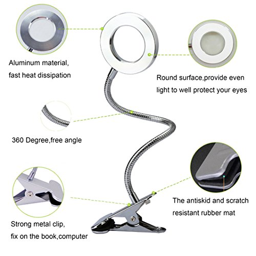 - 360 Degree adjustable metal gooseneck: Flexible enough to be adjusted, yet strong enough to stay in place so that you can always get the best light.★Max Height:18"★