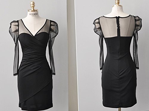 -. Feature : 華やかなシーンで活躍してくれるタイトなドレスです。 / デコルテから袖にかけてのシフォンは肩タック仕立てで文句無しのシルエット。 / セクシーな深めのVネックで胸元に視線集中! / やや艶のある身頃の生地はボディラインに合わせて巻き付けたようなデザインになっています。 / バックファスナー着脱になります。