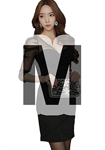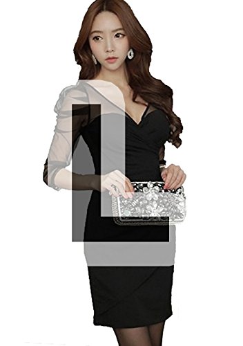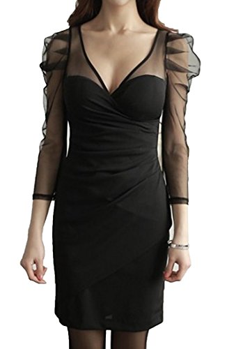 -. Title : (ミニマリ) minimali レディース 深Vネック パーティードレス シフォン パフスリーブ セクシー タイト ミニワンピース