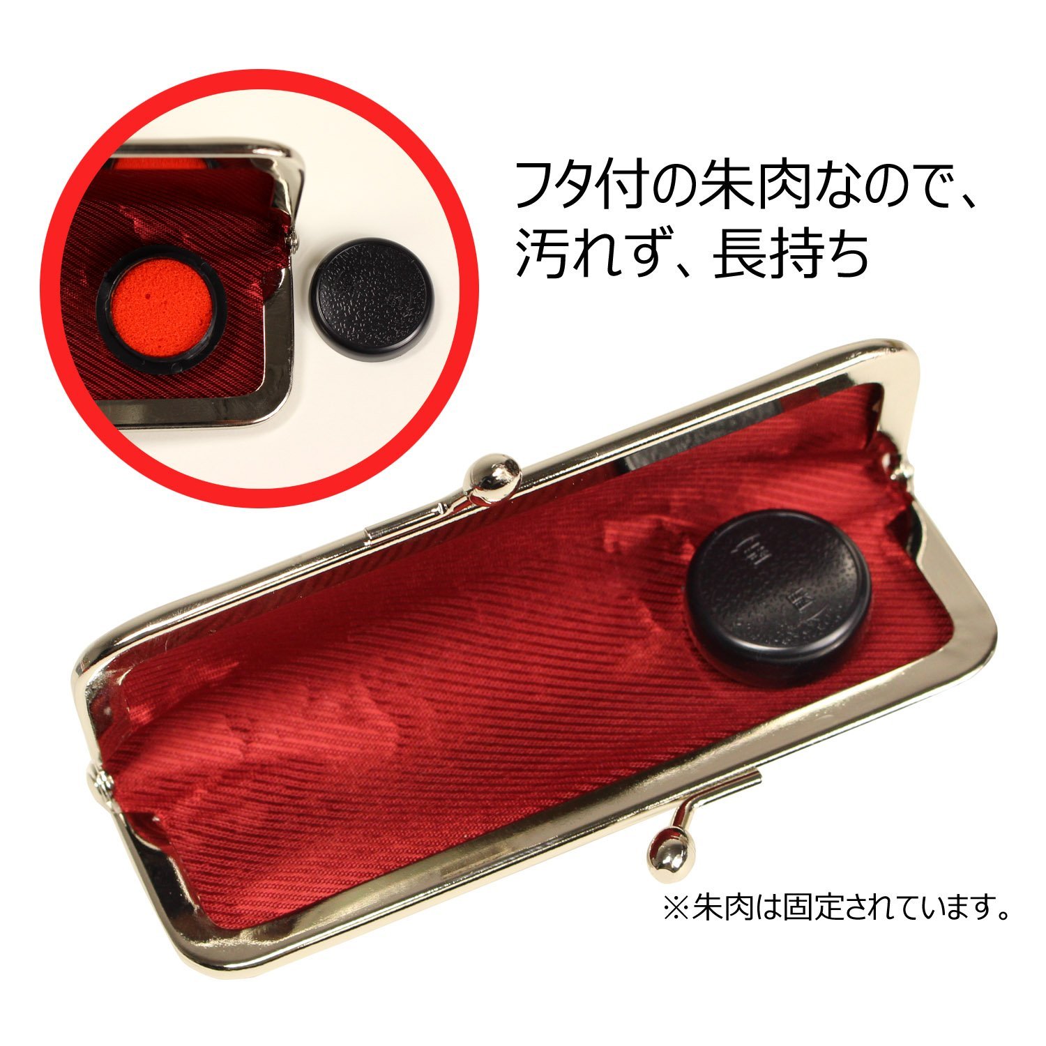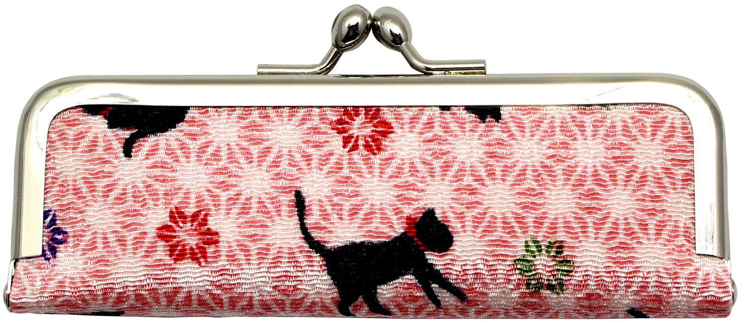 ちりめん生地を使用した柔らかな風合を持つ朱肉付き印鑑ケースです。 使いやすいがま口タイプなので、中の判子が取り出しやすく、朱肉も押しやすい設計となっています。 【サイズ】 約5x11.5mm 【素材】 表地:レーヨン、裏地:綿 / 【製造】 日本 【柄】 猫 桃