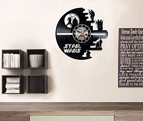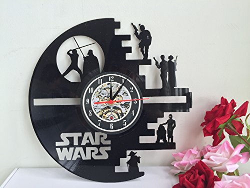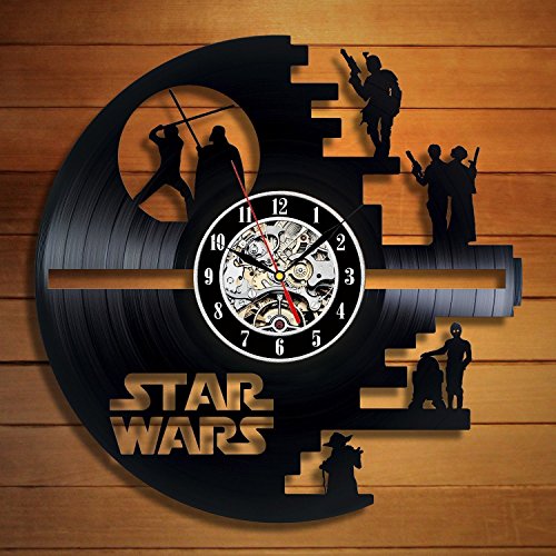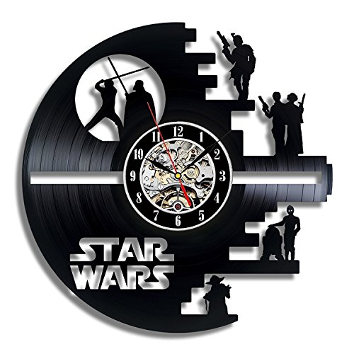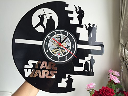 Studio : VinylEvolution Publisher : VinylEvolution Binding : Kitchen Product Description If you want to be the holder of Death Star our Death Star Wall Clock is the best solution for you. Put this incredible clock on your wall and start feeling yourself like an emperor of Death Star. Brand new, never used clock made of old used vinyl record. Be prepared to reveal the new sides of old school stuff. Feel free to ask about any custom changes you need. Detailed information about the product: - the clock is actually working and the mechanism is really quiet; - the clock face is a sticker and you may change it for no additional charge; - the size of the clock is 12; - each clock comes in a separate protected box with clock hands unattached; The clock is made of a single vinyl record, so you are not only getting a piece of art, but a piece of long history, which will carry it's spirit alongside you for a long time! We will need around 5 working days to make the clock and send it to you. Then it takes around 7-11 working days to be delivered to you. Tracking number is provided. We will refund you the money or send you another clock free of charge within 30 days after you receive the clock in case the clock comes broken. Please provide pictures. Enjoy! 0
