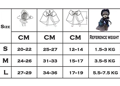 -. Feature : Material:Cotton,Skin-friendly fabrics to make your pet feel full comfort,Classic Color's Match make a unique and elegan style!~ / Multi-color's option,pretty dog essential! / Pets cloak (cloak suit) package which contains a hat, cape and a set. The new darling of the leading independent dog dress. / For accurate measurements, it is recommended to use a soft tape measure.(Recommended to relax 1-2cm)!Please allow manual measurement error between 1-3cm! / Colors may not appear exactly as seen on photo in real life due to variations between the computer monitors and naked eye color difference.