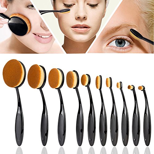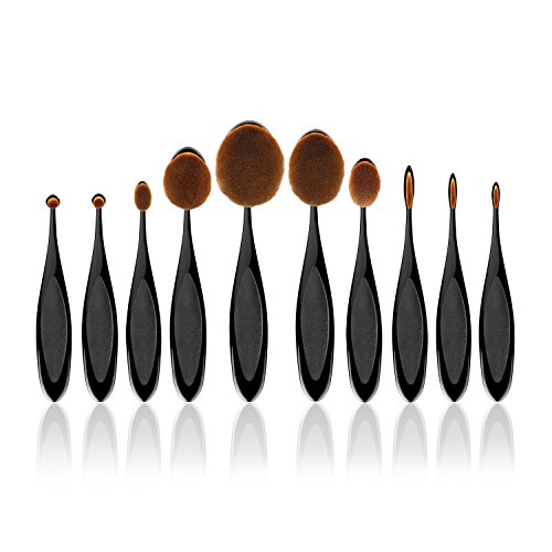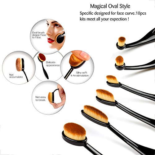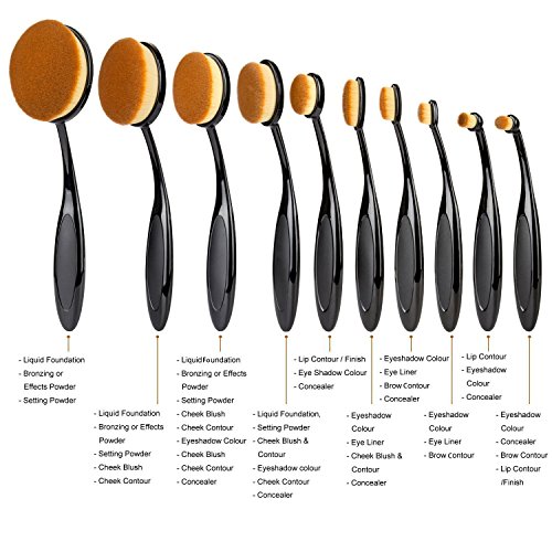 Makeup Brushes Set StarVast 10PCS Oval Professional Multi Face Powder Brushes Beauty Tools Kit with Foundation, Cheek Blushes/Contour, Lip/Brow Color, Eyeliner/Eyeshadow and Nose Shadow Brushes-Black