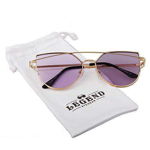 Cat Eye Lightweight Fashionable Solid Sturdy Metal Frame Women Sunglasses (Gold, Purple Candy)