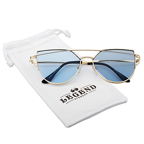 Cat Eye Lightweight Fashionable Solid Sturdy Metal Frame Women Sunglasses (Gold, Blue Candy)