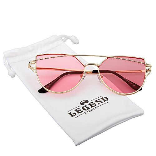 Cat Eye Lightweight Fashionable Solid Sturdy Metal Frame Women Sunglasses (Gold, Pink Candy)